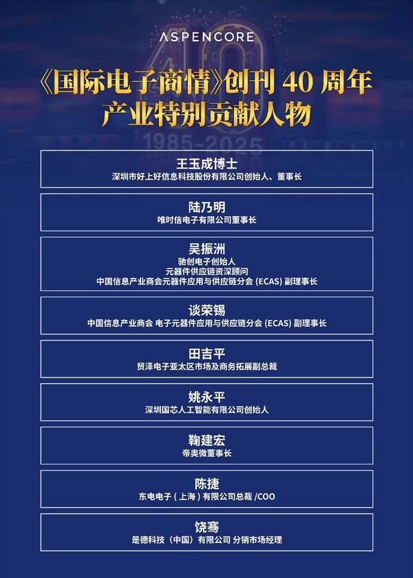 《国际电子商情》创刊40周年产业特别贡献人物奖名单揭晓