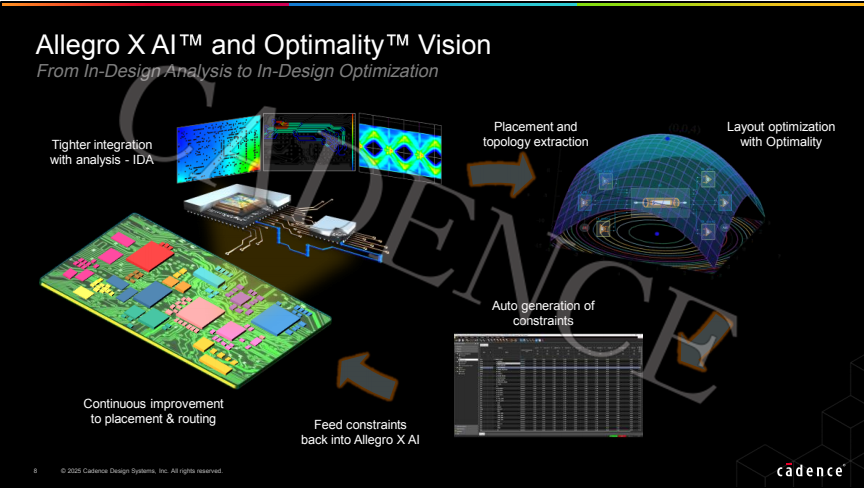 Allegro X AI™ 和 Optimality™ Vision 可实现设计分析的全过程优化,通过更紧密的分析集成改善设计分析,优化布局和提取布局与拓扑信息,自动生成约束条件,持续改进布局布线。