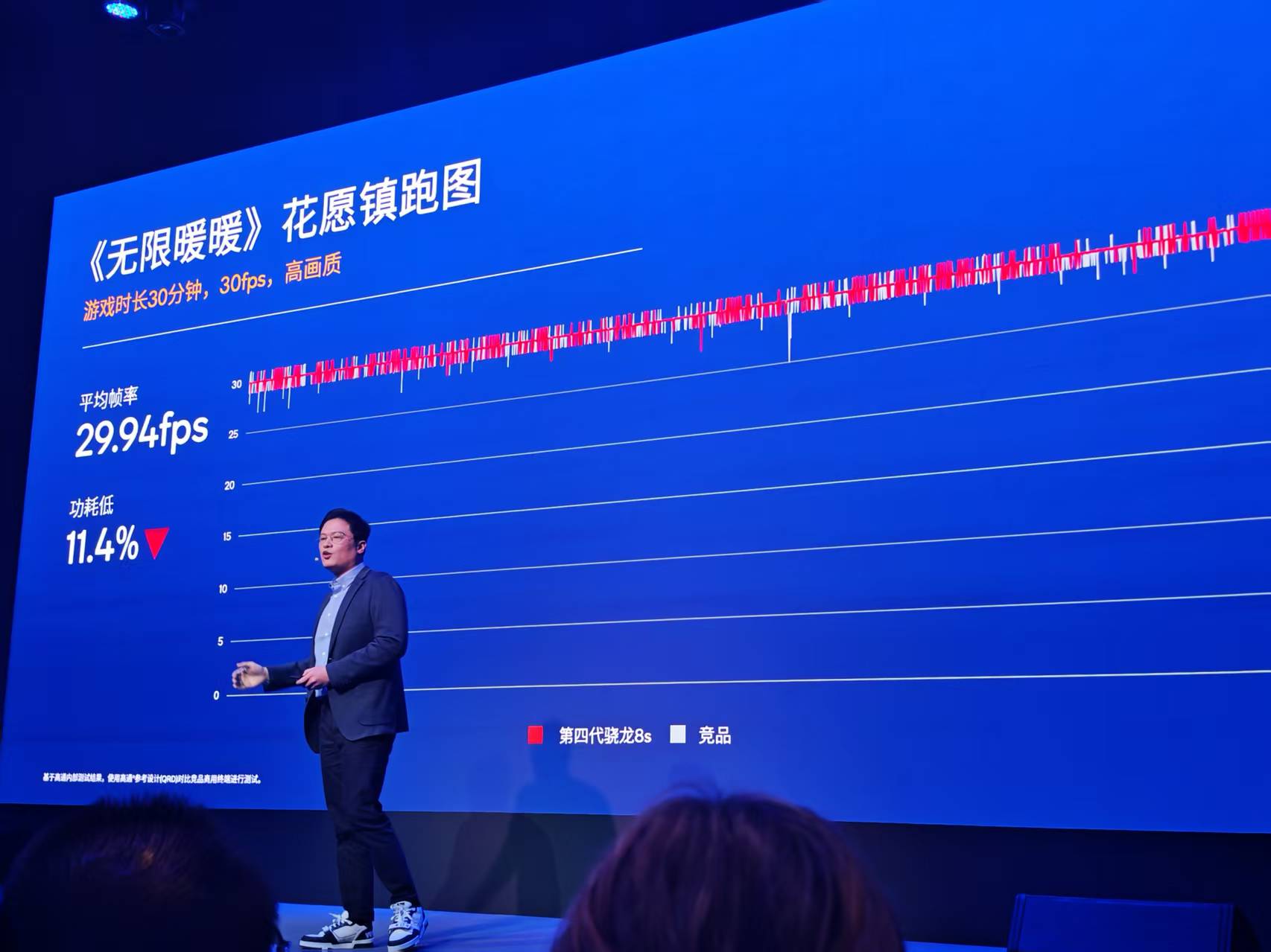 在《无限暖暖》花愿镇跑图中,目前游戏最高开放到30fps,在跑到基本满帧的情况下,第四代骁龙8s的功耗比竞品低11.4%。