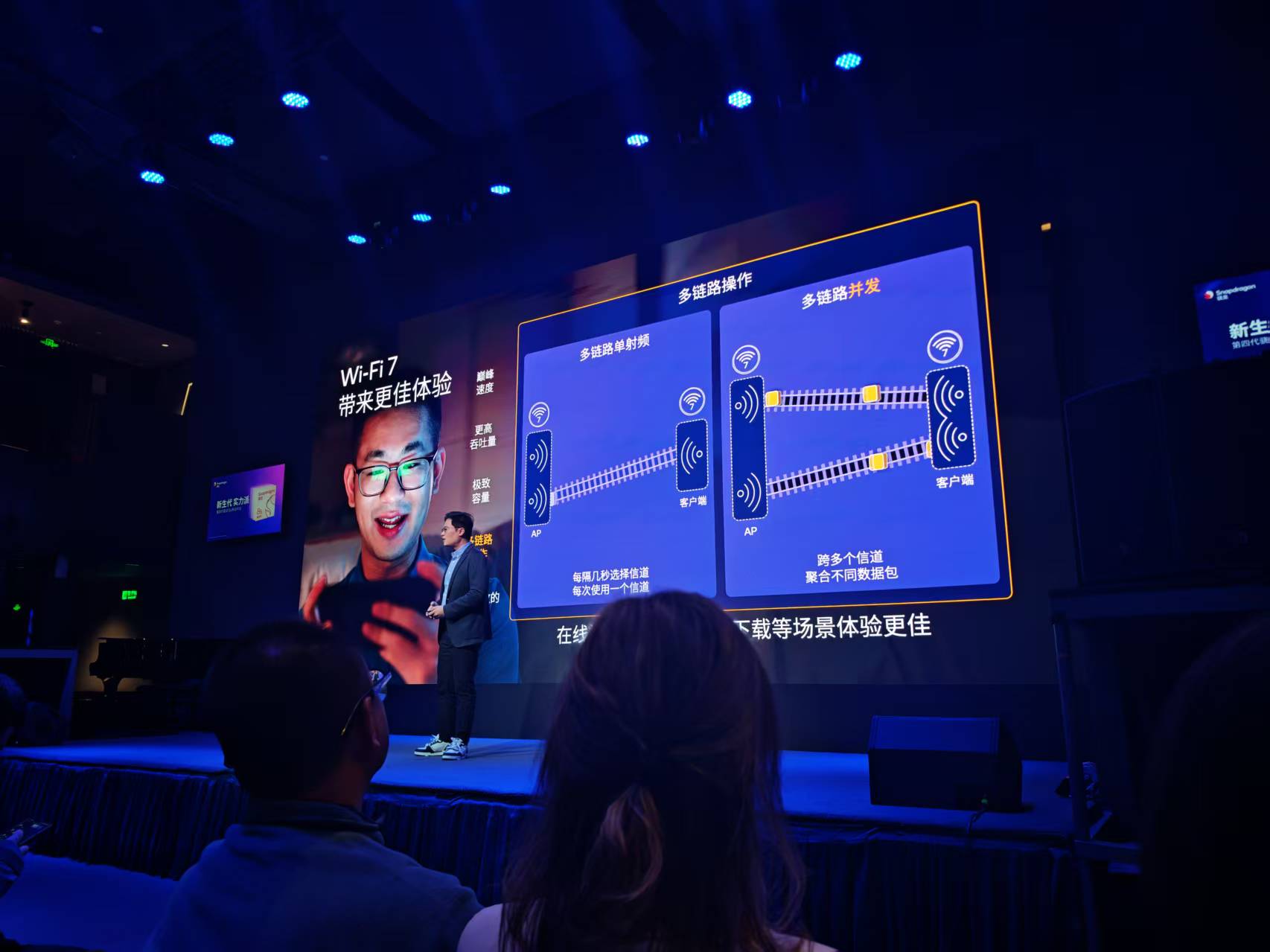马晓民强调,Wi-Fi 7的一个关键优势是多链路操作。过去,联网终端一次只能使用单个Wi-Fi频段。但在Wi-Fi 7的支持下,智能手机可以跨不同频段和不同信道同时发送和接收数据。这不仅提高吞吐量,还降低了时延,为用户提供更可靠的连接。无论是观看在线视频、玩游戏,还是下载大文件,Wi-Fi 7都能确保用户始终拥有稳定的网络覆盖。