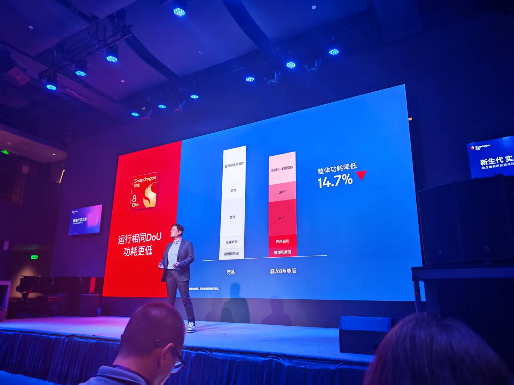 据马晓民介绍,在使用腾讯视频、抖音、微信、微博等热门应用时,骁龙8至尊版的功耗与竞品当代旗舰相比低20%以上。