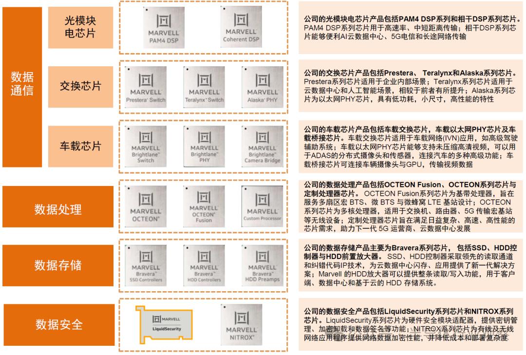 Marvell主要芯片产品布局