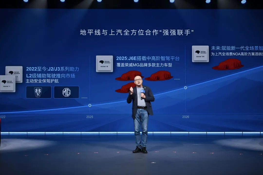 地平线与上汽集团合作历史深厚,双方自2017年便开启战略合作,目前,地平线与上汽集团已基于征程全家族计算方案达成全方位量产合作。随着中国汽车行业迈入“智能化下半场”,地平线与上汽集团的合作也迎来全面升级——上汽集团旗下荣威、名爵等品牌的多款主力车型将采用地平线征程6E打造智驾方案,并即将于2025年内正式落地,未来双方还将基于征程6系列拓展至全场景智驾合作。