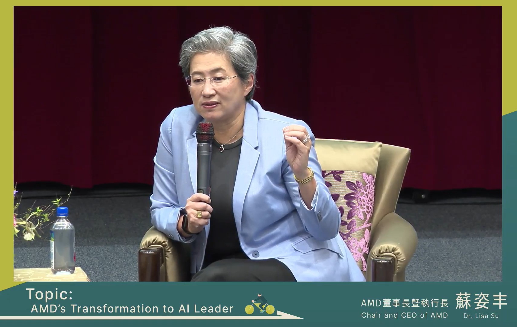 苏姿丰今日上午在台大椰林讲座创智系列上发表了一篇主题为 AMD's Transformation to AI Leader(AMD 转型 AI 领导者)的演讲。