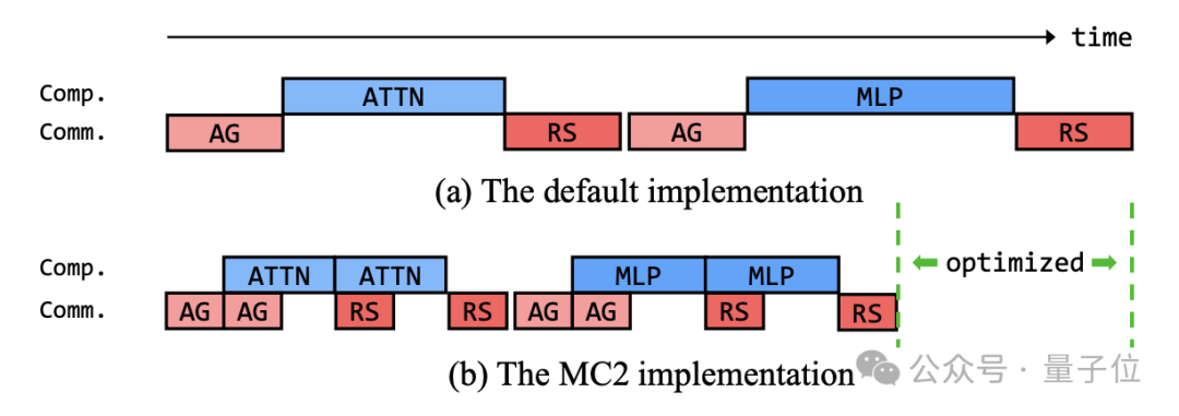 MC^2(Merged Computation & Communication)和 BOA(Batch Optimization Accelerator)分别对张量并行和规范化层的通信进行了专门优化……