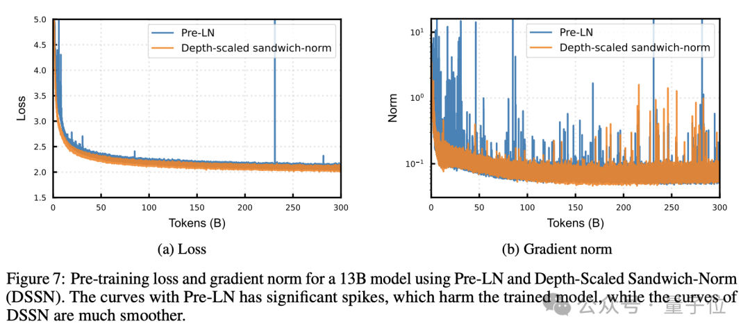 为了解决训练超深网络面临的不稳定性和收敛困难等问题,盘古 Ultra 在模型架构上做出了两个关键改进 —— 深度缩放的 Sandwich-Norm 层归一化和 TinyInit 参数初始化策略。