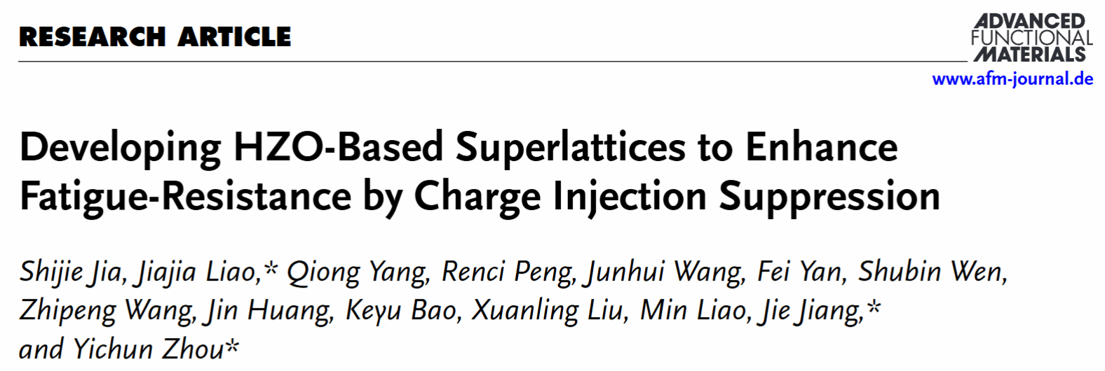 近日,西安电子科技大学先进材料与纳米科技学院周益春教授团队在国际材料领域著名学术期刊Advanced Functional Materials期刊上发布了以“Developing HZO-Based Superlattices to Enhance Fatigue-Resistance by Charge Injection Suppression”为题的研究成果。