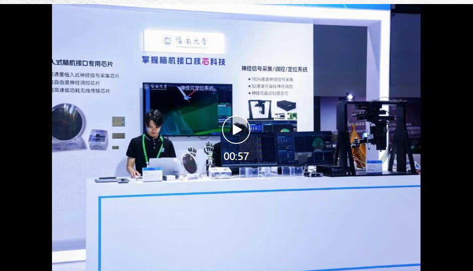 据海南大学生物医学工程学院官方微信号4月18日消息,2025年4月13日~18日举行的第五届中国国际消费品博览会上,海南大学正式发布了自主研发的植入式脑机接口(BCI)核心技术与系列产品,包括全球领先的脑机接口专用芯片、神经信号采集系统、神经信号调控系统及神经元定位系统。这一突破标志着我国在脑机接口领域实现全链条技术自主可控,为脑科学研究和医疗应用注入“中国芯”动力。