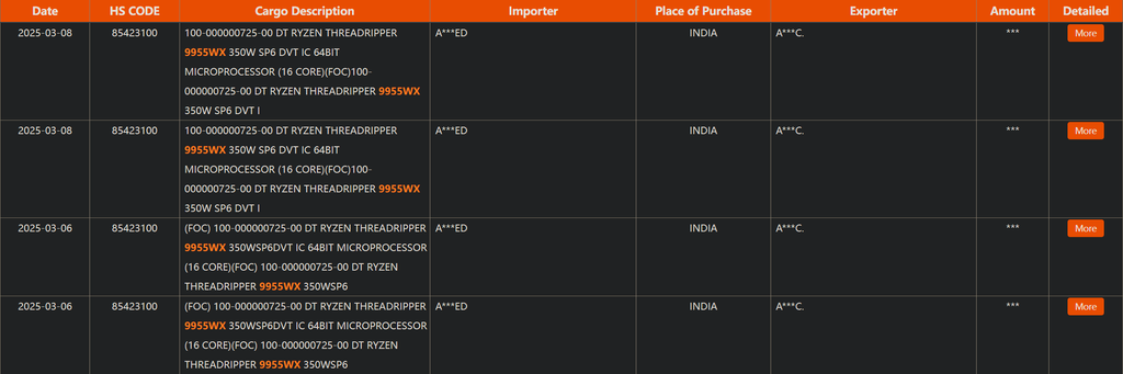 根据X网站Everest的爆料,几款新型Ryzen 9000 Threadripper CPU在贸易数据聚合商NBD.ltd上被公开。这些条目涵盖了64核、16核和12核型号,据悉它们正被积极运往各设施,可能用于验证和测试。这一动态虽不预示立即发布,但表明这些CPU可能已进入最终开发阶段。对于此次泄露,建议持谨慎态度。尽管我们仍缺少部分型号信息,但每次泄露都为Threadripper的完整图景增添了新的拼图。