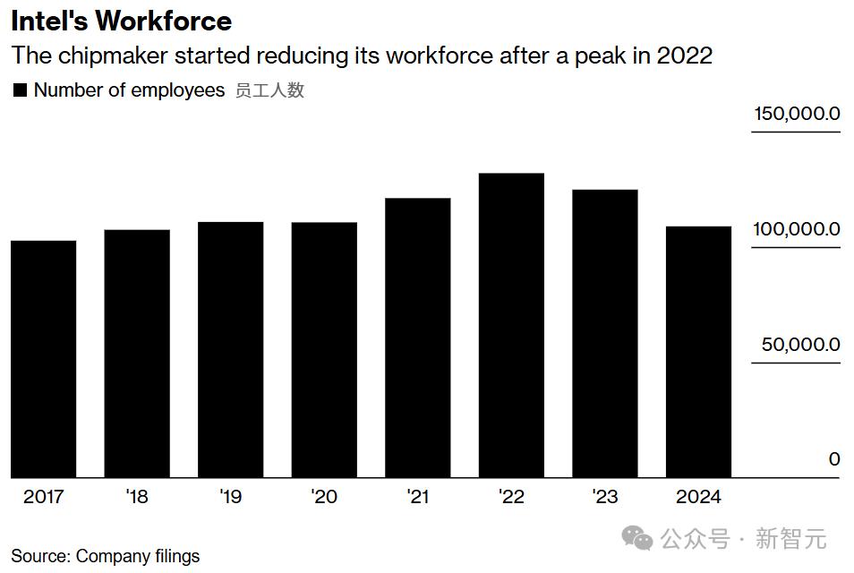截至24年底,英特尔的员工总数为10.89万人,低于前一年的12.48万人。