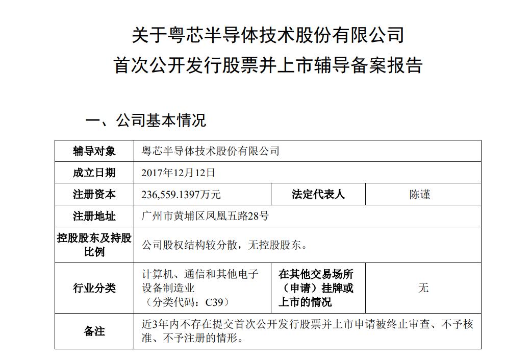 近日,据证监会官网信息,粤芯半导体技术股份有限公司(以下简称“粤芯半导体”)向广东证监局提交IPO辅导备案,辅导机构为广发证券。