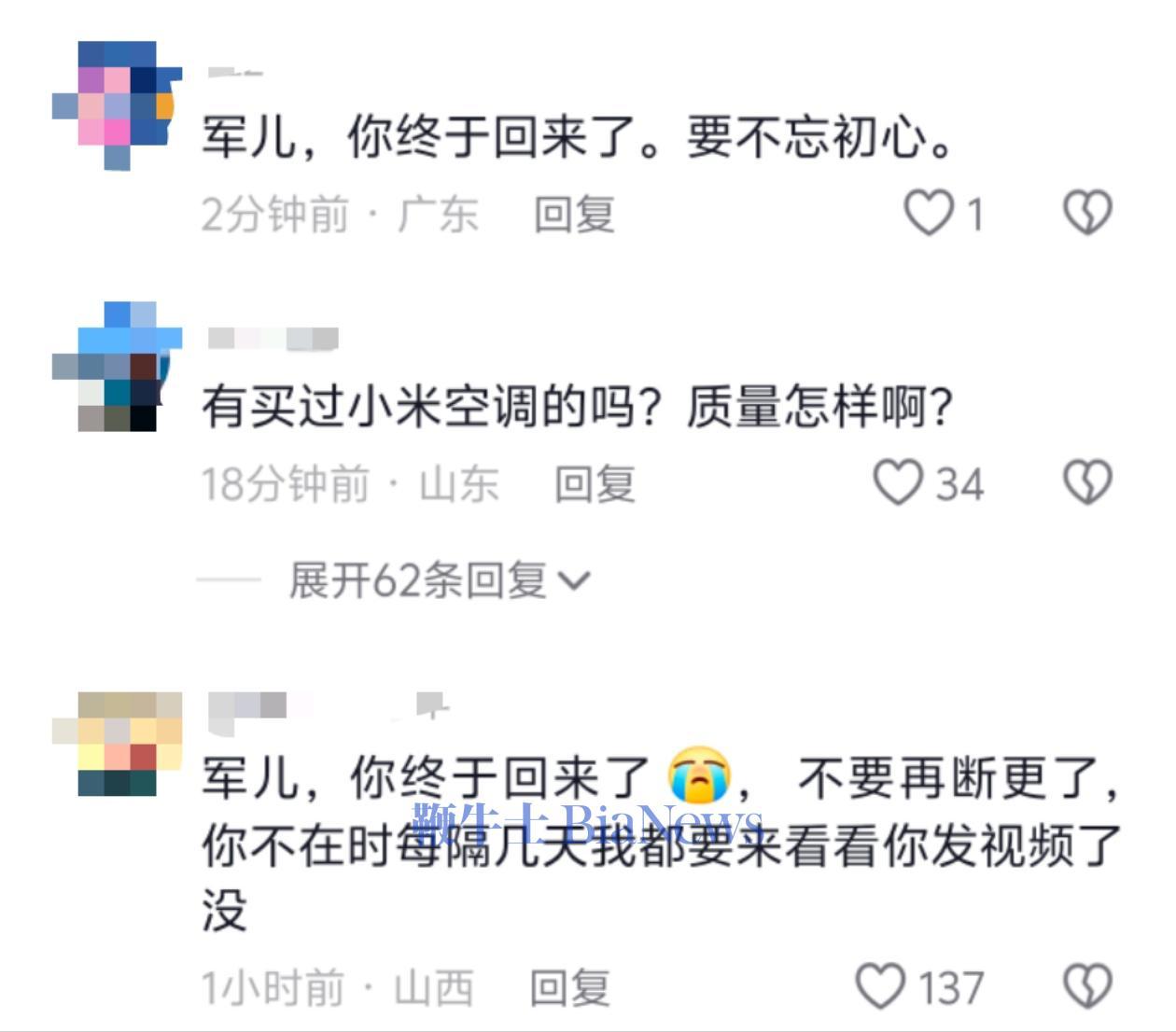 有网友称:“军儿,你终于回来了。不要再断更了,你不在时,每隔几天,我都要来看看你发视频了没。”