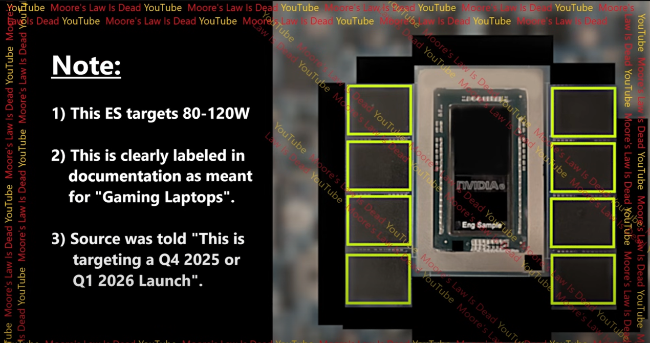 IT之家 5 月 28 日消息,爆料人 Moore's Law is Dead 在昨日的 YouTube 视频中展示了英伟达消费级 APU 的工程样品图,芯片周围环绕八枚疑似内存的模块,暗示其有望采用高带宽内存设计以释放核显性能,该样品当前热设计功耗为 80-120 瓦。