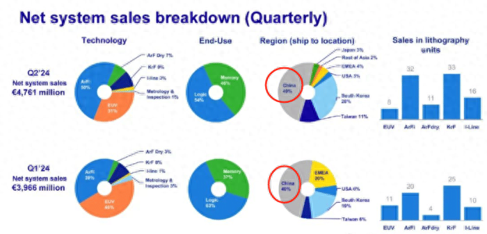 大家都清楚,目前ASML的营收中,中国贡献了49%,可以说一半的收入靠中国市场。