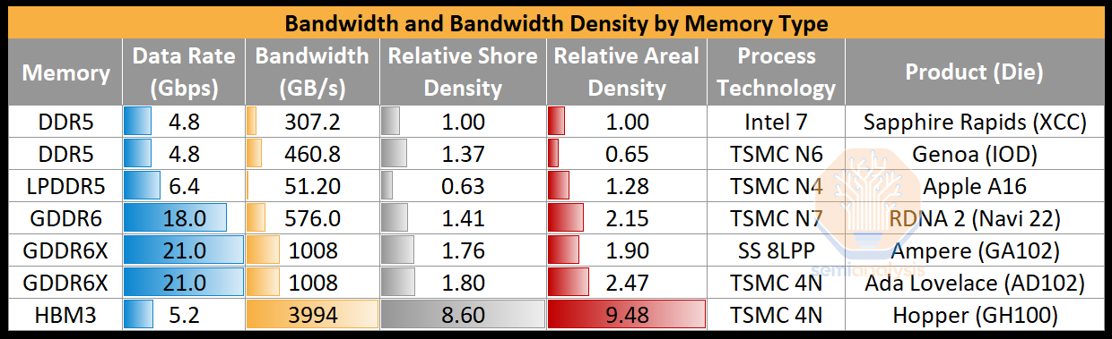 HBM在带宽和封装密度方面占据主导地位。来源:SemiAnalysis