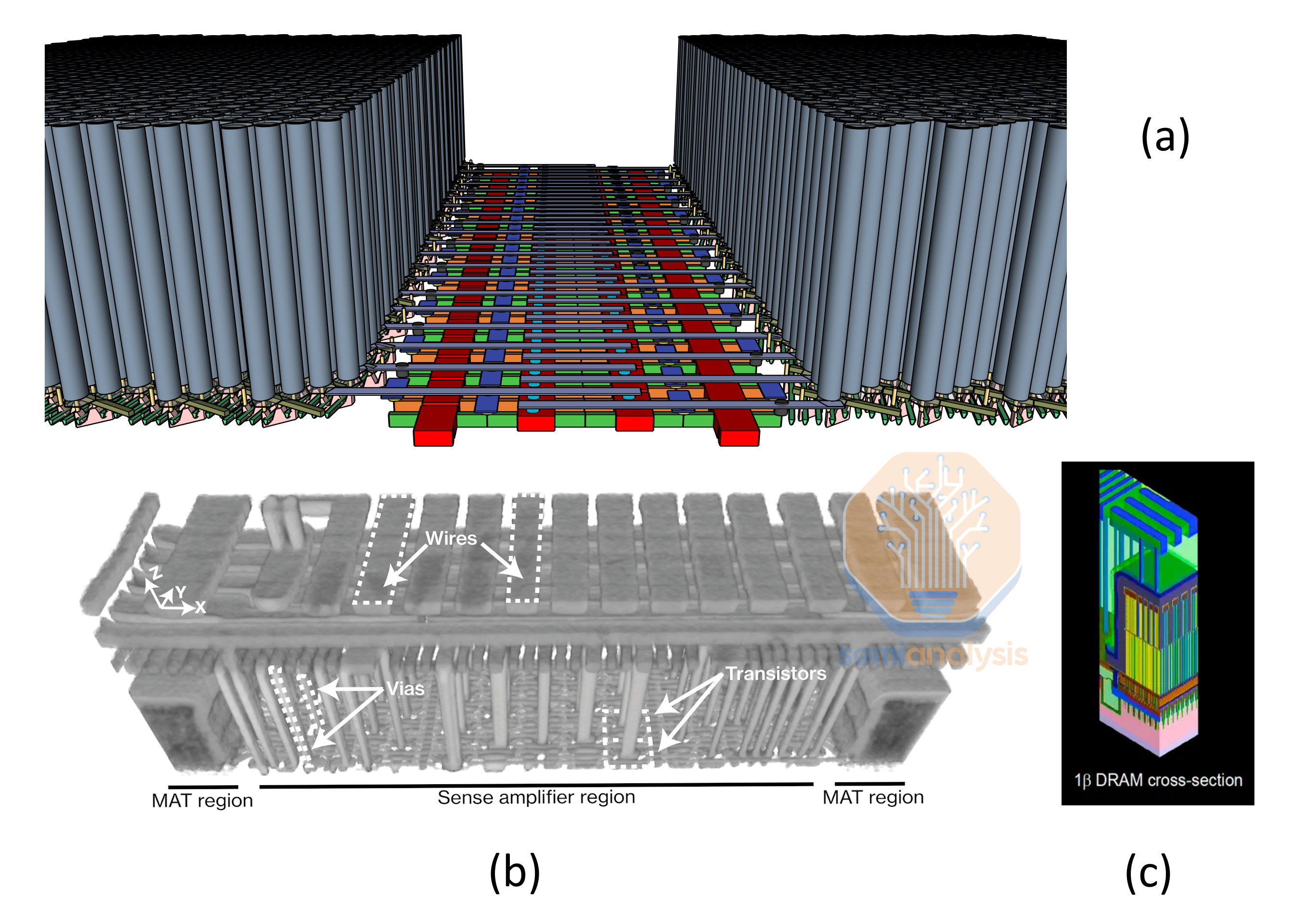 (b)FIB拆解DDR4 DRAM的感测放大器区域(图源:Marazzi等)