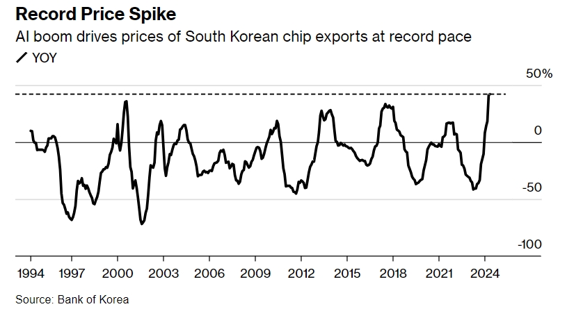 尤其是,全球性的人工智能发展热潮,已成为三星电子和SK海力士等韩国晶片制造商的一大助益。