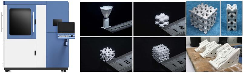 随着先进陶瓷在航空航天、生物医疗、新能源等领域的广泛应用,商用高性能3D打印陶瓷设备和浆料被欧美等发达国家垄断,且现有产品幅面小、成形慢、性能差的问题日益凸显,严重影响生产效率和投资效益。曾勇副研究员团队在科技部重点研发计划、北京市自然科学基金、北京市教委等项目的支持下,围绕大尺寸、高精度复杂构型零部件3D打印和陶瓷粉末层间结合组织性能调控新方法开展系统性与创新性研究,开发出具有完全自主知识产权的大幅面紫外激光高速扫描陶瓷3D打印设备;研发出高固相比、低粘稠度、低收缩率、长效抗凝的均质陶瓷浆料体系;发明了高纯度、大尺寸陶瓷制品均匀成形、层间晶界强化、烧结致密化过程组织精确控制新方法;解决了陶瓷3D打印成形小、成形难、制品强度弱等“卡脖子”难题。目前,研究技术成果已实现产业化,建成大尺寸、高精度、高纯度快速成形陶瓷制品生产线6条,不仅保障了国家相关高端装备发展和关键材料的自主可控,而且引领和推动了我国陶瓷3D打印产业的良性发展,对促进我国陶瓷3D打印工具软件、装备、材料与服务产业链的健康发展,推动国家关键高端材料和高端装备发展具有重要价值。