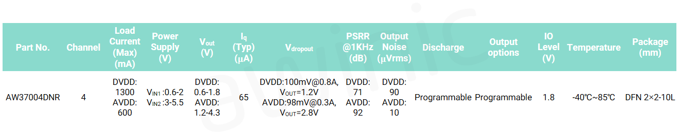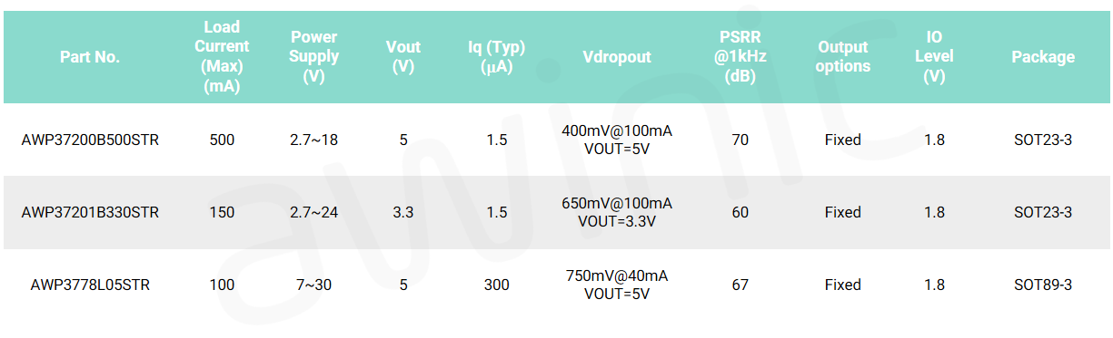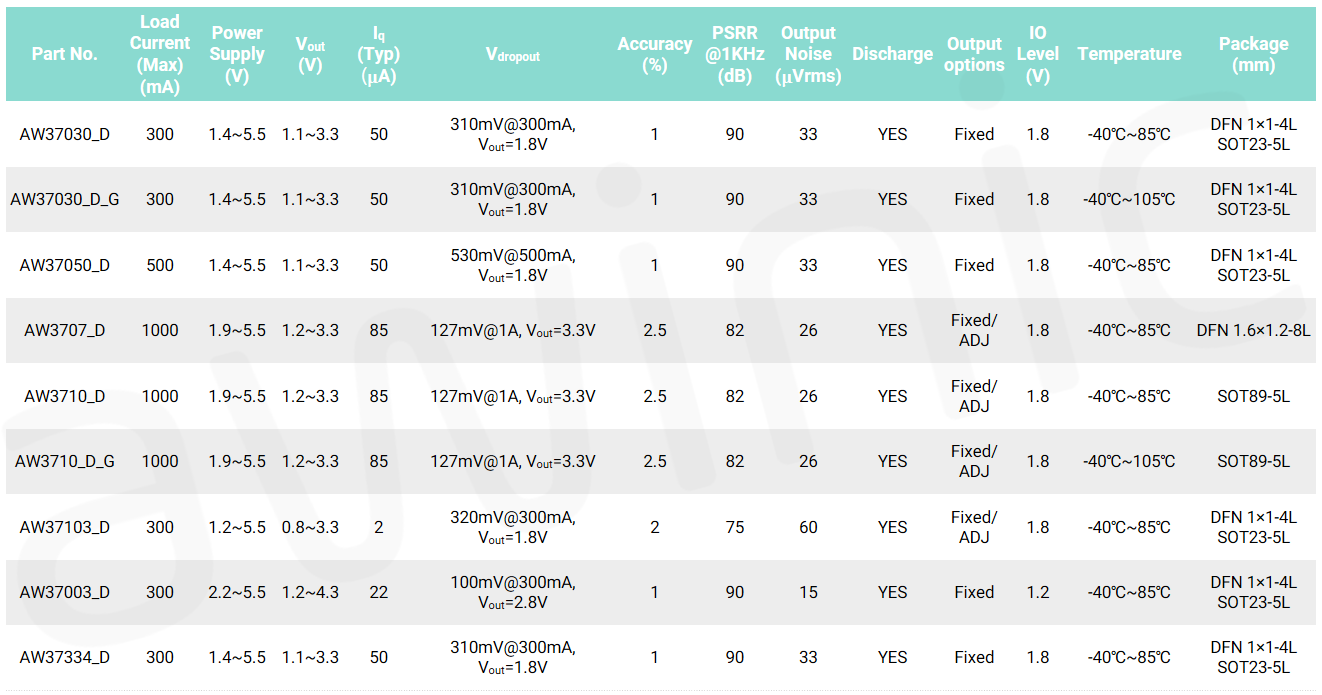 4、艾为推出新一代高电源抑制比、低噪声LDO AW37003YXXX