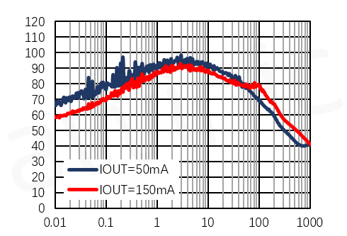 PSRR:92dB(IOUT=10mA, freq=1kHz, VOUT=2.8V)