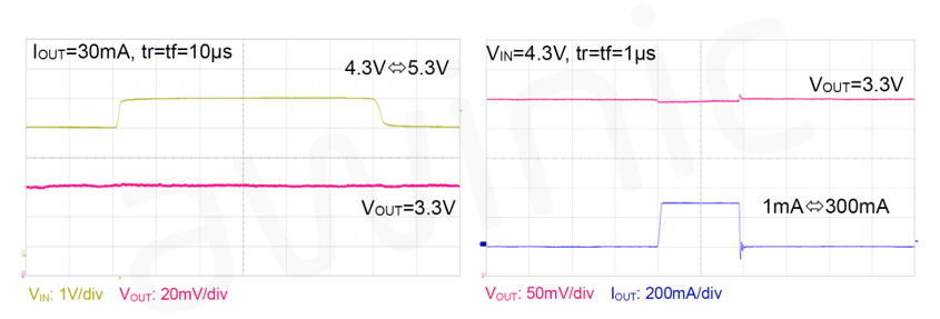 AW37003YXXX具有快速瞬态响应性能,无论是在输入电压出现跳变或者负载电流发生突变时,LDO能够迅速调整其输出电压,以维持稳定的电源输出。这种优异的瞬态响应特性使得AW37003YXXX更加适用于需要高稳定性和可靠性的电源管理应用中。