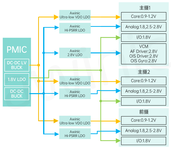 摄像头作为捕捉图像的关键设备,对于电源的稳定性有着极高的要求。纹波,即电源线上的微小波动,如果得不到有效抑制,会直接影响摄像头的成像质量。AW37003YXXX采用的P-MOSFET LDO架构,通过多级级联电源的设计,显著增强了纹波的抑制效果,而高带宽特性,更是让AW37003YXXX在应对各种频率的干扰时表现出色。无论是高频还是低频的干扰信号,它都能进行有效处理,确保电源的稳定性不受影响。