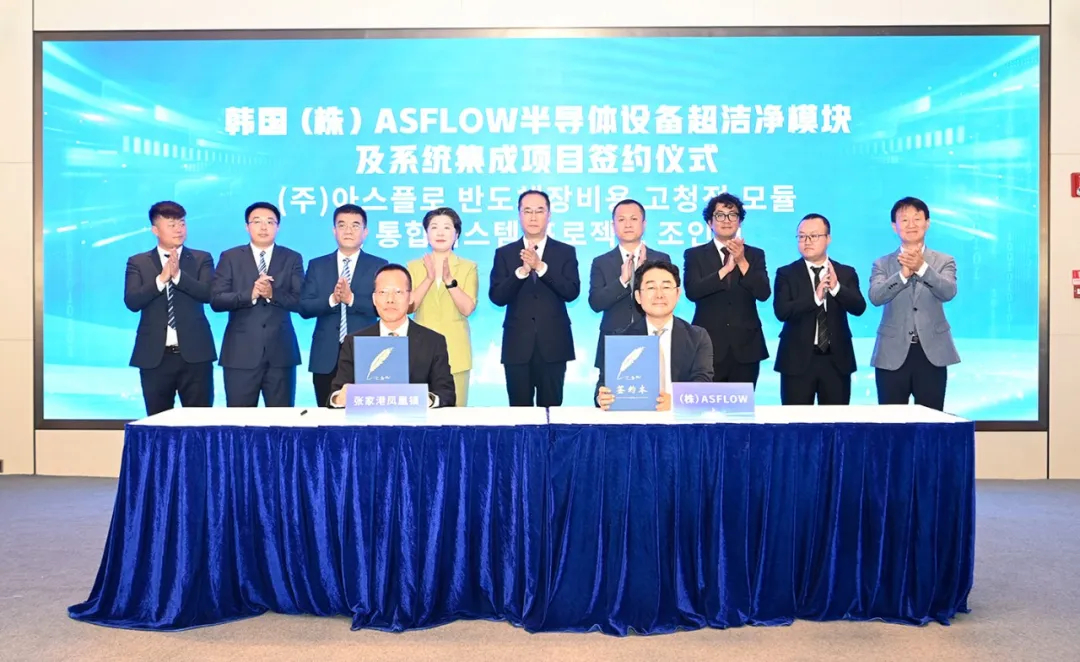 据张家港发布消息,9月3日,韩国(株)ASFLOW半导体设备超洁净模块及系统集成项目签约仪式举行。
