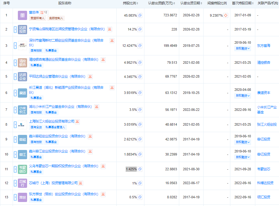 标的公司荣湃半导体,系隔离芯片厂商,成立于2017年,产品包括数字隔离器、驱动(MOSFET IGBT driver)、接口、采样(放大器、ADC)、光耦兼容等。天眼查显示,该公司法定代表人为董志伟(持股比例45.083%)。其股东阵容亦相当亮眼,深圳市富海新材二期创业投资基金合伙企业(有限合伙)、清控银杏南通创业投资基金合伙企业(有限合伙)、湖北小米长江产业基金合伙企业(有限合伙)、上海张江火炬创业投资有限公司、义乌韦豪创芯一期股权投资合伙企业(有限合伙)等分别持有荣湃半导体12.4247%、4.9521%、3.5%、3.0319%、1.425%股份。