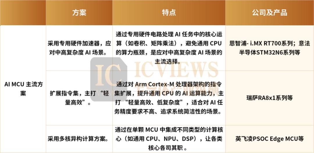 面对 AI MCU 的广阔市场,国际芯片巨头早已纷纷出手,通过不同技术路径打造核心竞争力,形成了三类主流方案: