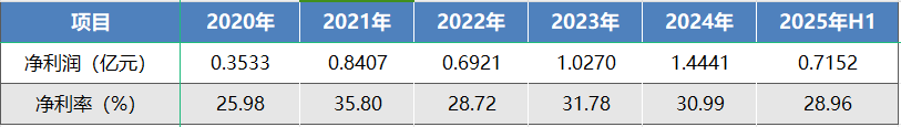在利润端,从近几年的净利率变化趋势来看,2020年的净利率为25.98%,2021年为35.80%,2022年为28.72%,2023年为31.78%,2024年为30.99%,2025年上半年为28.96%。2021年和2023年的净利率较高,但几年来基本保持了相对稳定的水平,这表明公司在成本控制和盈利能力上具有较强的韧性。
