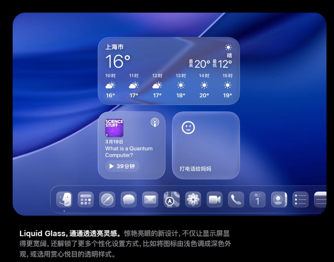 软件方面,macOS也更新到了macOS Tahoe,与iOS 26一样,统一了液态玻璃设计风格,颜值爆表。
