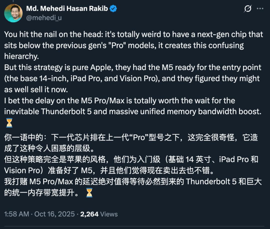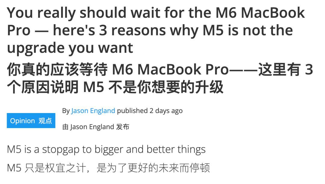 同样,尚未发布的 M5 Pro/Max 也值得等待。
