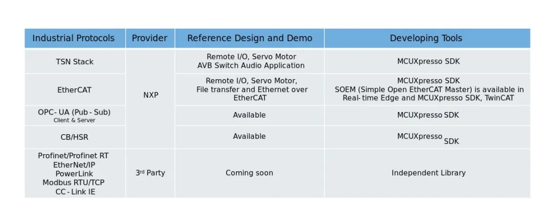 i.MX RT1180除了能够支持EtherCAT现场总线外,还支持TSN、Profinet等几乎所有工业网络。