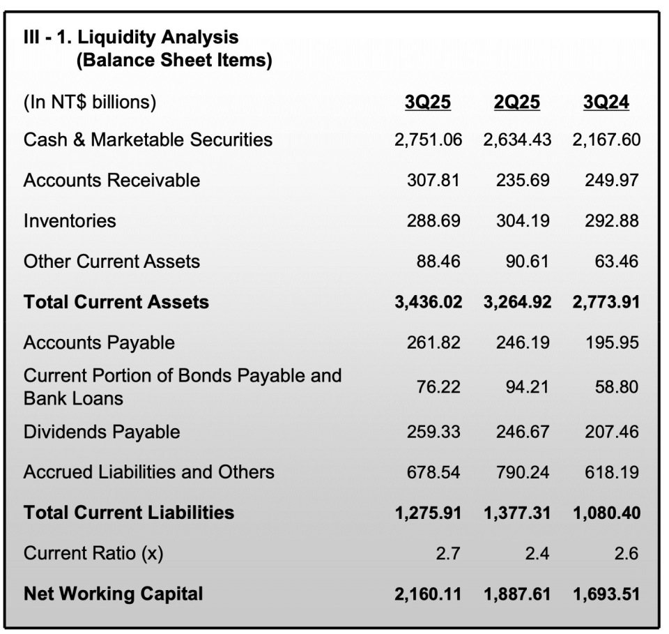 截至9月30日,台积电账面持有的现金和有价证券总额为新台币2.75万亿元(约合人民币6402亿元),相比之下去年第三季度为新台币2.16万亿元,上一季度为新台币2.63万亿元。