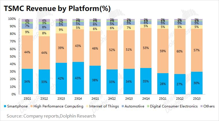 本季度7nm以下的收入占比维持在74%,先进制程领域是公司的核心收入来源。具体来看,本季度公司3nm收入占比为23%,5nm的收入占比维持在37%。当前公司的3nm和5nm产能都已经满产,公司2nm工艺也将在年末开始量产。