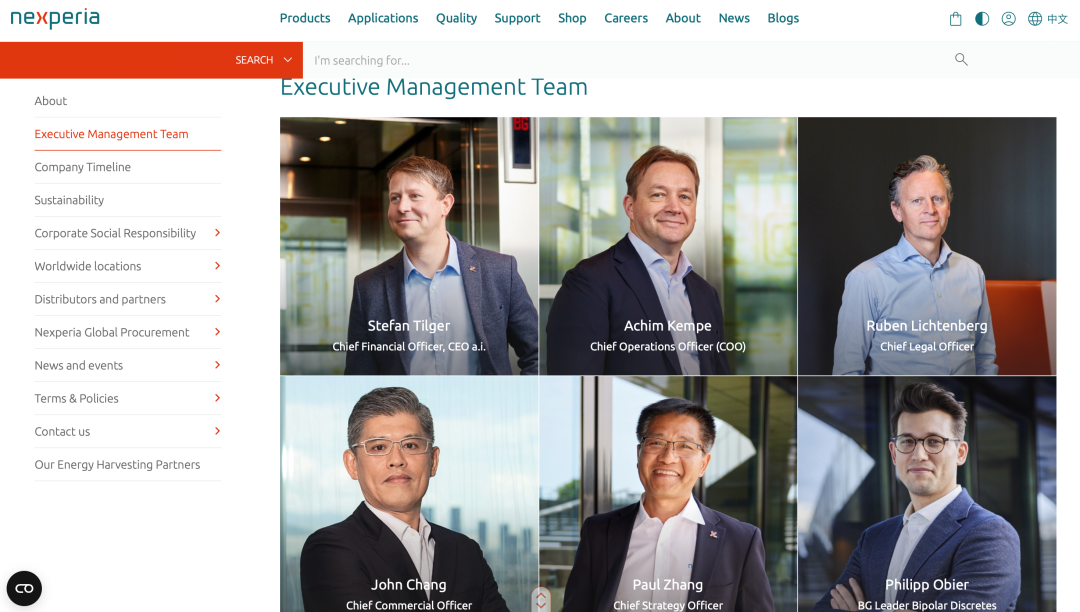 目前安世半导体官网已无张学政