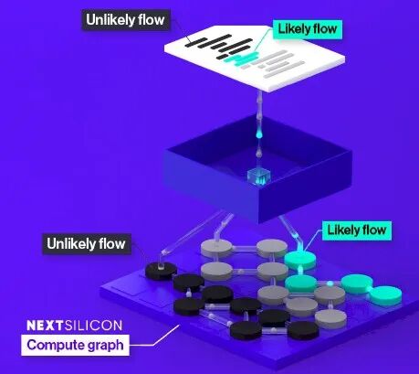 “NextSilicon 的宗旨是使用软件来加速你的应用程序,”Raz 解释道。“其核心是一种复杂的软件算法,它能够理解代码中的重要内容并对其进行加速。相比之下,大多数 CPU 和 GPU 都是某种形式的处理器核心组。它们接收指令,并试图构建复杂的流水线和矢量指令集,并采用乱序执行来减少延迟。我们认为这是错误的方法。更好的方法是应用帕累托原则,看看哪些 20% 的代码占用了 80% 的运行时间。为什么我们不对计算和内存应用 80/20 规则呢?为什么我们不能自动识别重要的计算内核并尝试只关注它们呢?”