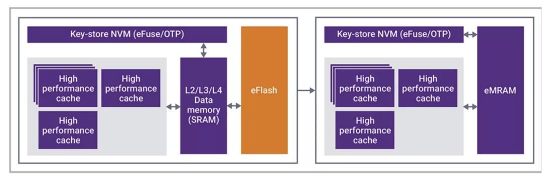 对于MCU来说,嵌入式闪存(eFlash)存储器是一种常用的内置存储器 (NVM)。由于片上内存容量增加和eFlash达到28nm以下的极限,这种内存空间正在迅速变化。