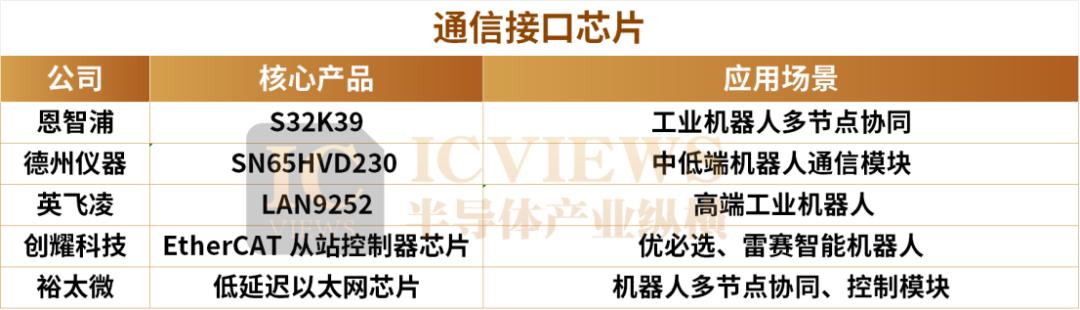 国际市场上,恩智浦 S32K39、德州仪器 SN65HVD230、英飞凌 LAN9252是主流选择,垄断工业机器人通信模块市场。