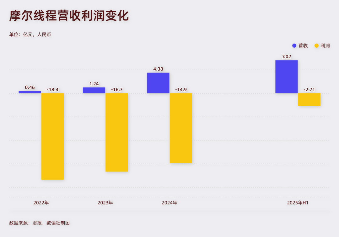 今年上半年,摩尔线程实现营收7.02亿元,半年营收超过了此前三年。