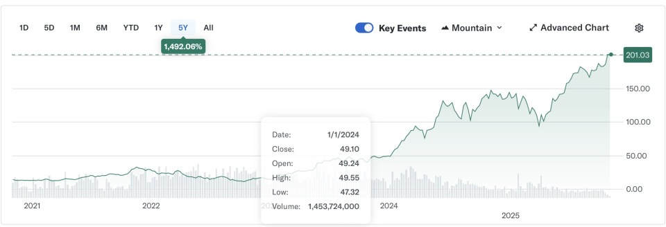 10月28日,英伟达在华盛顿举行的GTC大会上宣布了一系列重磅产品更新、战略合作与投资计划,推动周二股价大涨4.98%,报收于201.03美元。该公司股价年内已累计上涨超过50%,较4月低点翻倍。