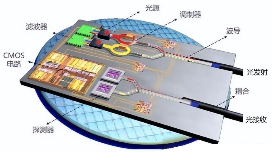 硅光模块可使用目前较为成熟的CMOS集成电路产业。硅光工艺流程中的设计方法、工具、流程、工艺平台等方面,都参考和借鉴了已有的硅半导体相关技术。