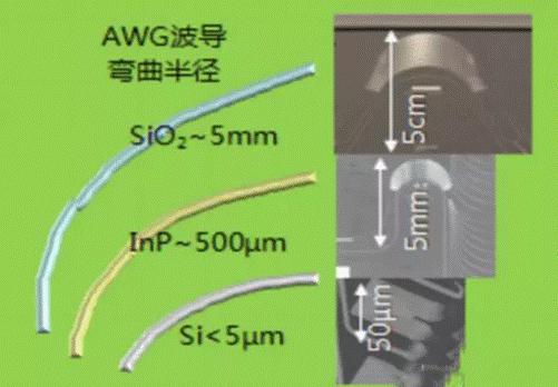 不同材料的波导弯曲半径对比