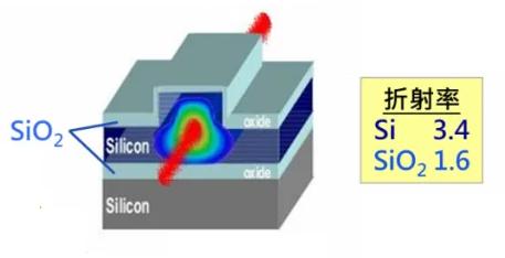 具体来说,就是基于刻蚀等工艺,利用硅与二氧化硅的折射率差异(硅3.45 vs 二氧化硅1.45),构建微米级的传输通道(光波导),让光信号以全内反射的方式,在通道里传播。