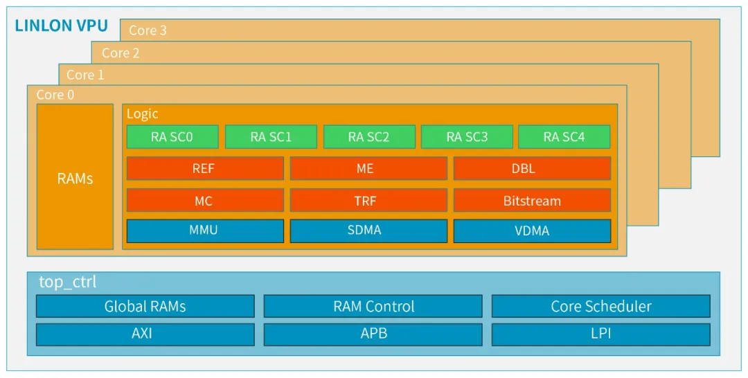 采用多核多格式编解码融合的可编程处理架构,单核的编码或解码性能可达到每秒 4K60 帧