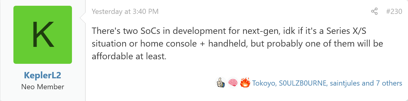 KeplerL2 称其不清楚这两款 SoC 会是类似微软 XBox Series X|S 的家用主机高低配版本,抑或是一款面向常规家用主机而另一款瞄准掌机市场,不过这位消息人士认为可能至少会有一款经济实惠。
