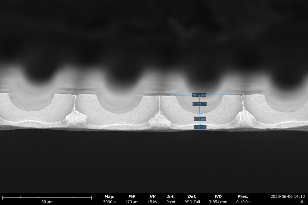20μm超薄FMM微观图形侧视图(图源/企业)