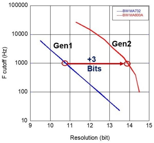 MAQ600A还具备高带宽的优势,在 150Hz 带宽条件下具有 14.8 位分辨率,在 13kHz 带宽下具有 12.5 位分辨率,此外,MAQ600A采用了延迟补偿技术,延迟时间在±0.5us内,可有效支持快速环路控制。