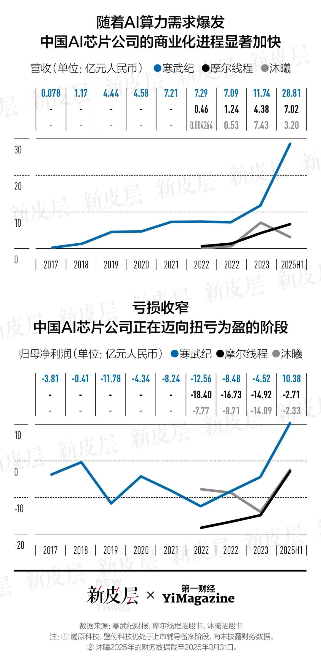 这些公司并非全都像寒武纪那样自创立起就笃定做AI芯片,比如摩尔线程2020年成立时的目标是做服务于影视渲染、游戏图形等场景的通用GPU,就像英伟达曾经做的那样。不过随着AI推理需求的爆发,芯片公司改变业务结构已成大势。摩尔线程的业务重心目前已经从图形加速卡转移至AI智算,沐曦则从智算推理转向推出训推一体的GPU芯片。