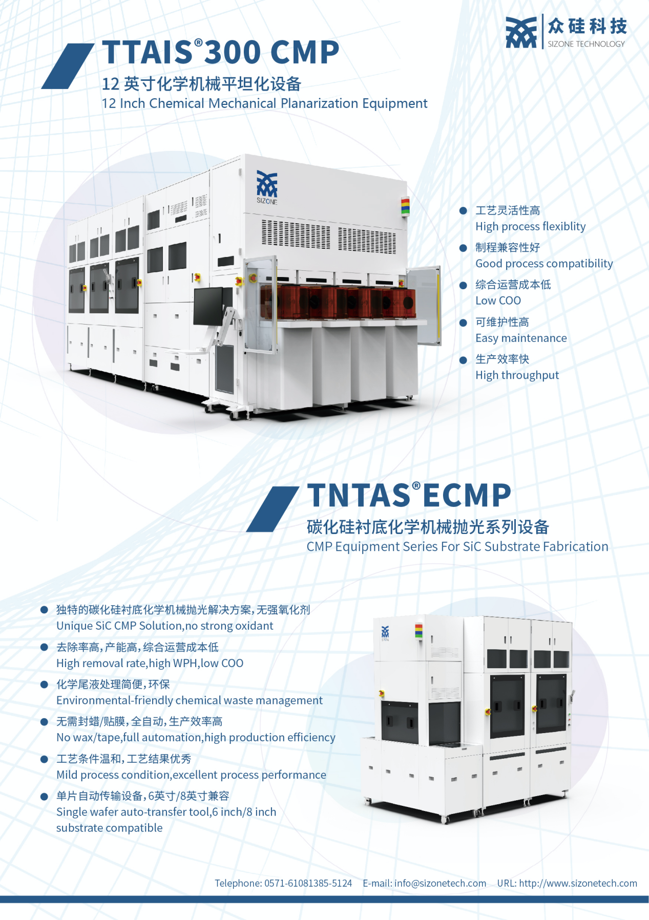 该公司主营产品为化学机械平坦化/抛光(CMP)设备,现已成功推出覆盖6英寸至12英寸的多款自主创新产品,广泛应用于晶圆制造、大硅片、先进封装及碳化硅衬底等关键领域。其中,12英寸CMP设备采用6抛光盘、2列左右平行布局的全新架构设计,突破了目前市场主流设备4盘或3盘的架构模式,可同时支持3盘工艺或2盘工艺,满足先进制程中的各种工艺需求。该设备凭借卓越的创新性能,已认定为国内首台(套)装备,充分展现了众硅科技在CMP设备领域的技术领先地位与创新能力。